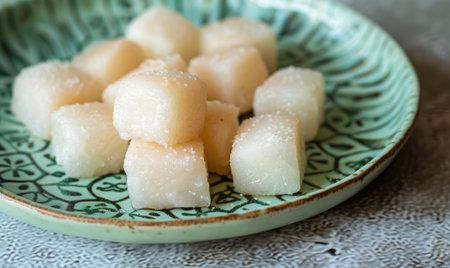 A bowl of fresh jicama or bengkoang (Jicama slices), gut health.