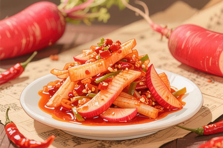 Korean spicy salad with radish and kimchi - korean food style