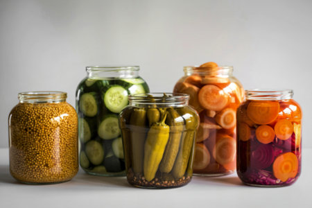 Homemade Pickled Vegetables in Glass Jars Ready for Storage