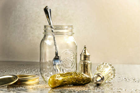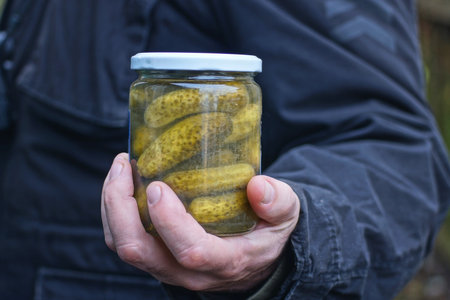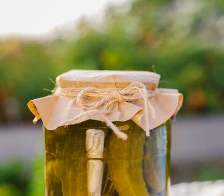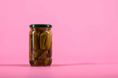 Pickles in a glass jar. Canning vegetables food. Marinated preserving.