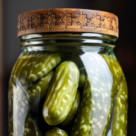Pickle Perfection: Captivating Overhead View of Pickle-filled Jars