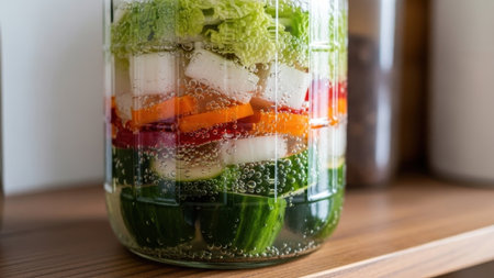 A visually appealing jar filled with a variety of fresh mixed vegetables, showcasing vibrant colors and textures, perfect for healthy meals and cooking inspiration.