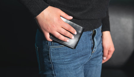 concept of pick pocket of a hand stealing wallet from back pocket of jeans