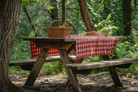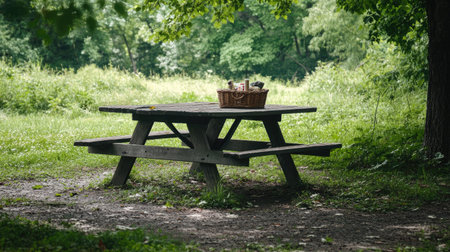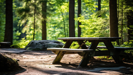 Picnic spot nestled amidst lush forest, serene and inviting