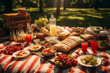 picnic with blanket spread out all food on a grassy field when spring day professional photographypicnic with blanket spread out all food on a grassy field when spring day professional photography