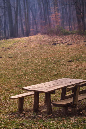 forest wooden picnic table