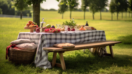 Picnic on the grass. Picnic still life. Created using generative Al tools. No people.