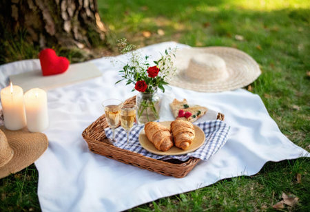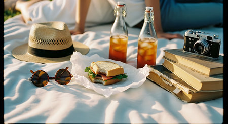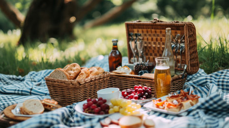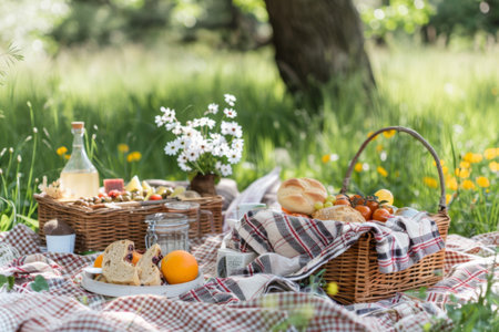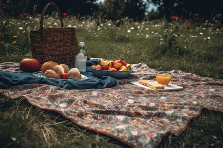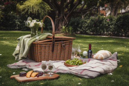 Picnic on the grass. Picnic still life. Created using generative Al tools. No people.
