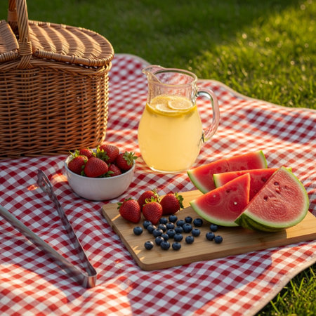 Colorful Summer Picnic with Sandwiches and Lemonade
