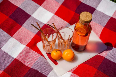 Summer Picnic at sunset on the plaid, food and drink conception lifestyle