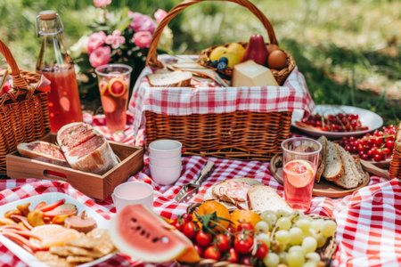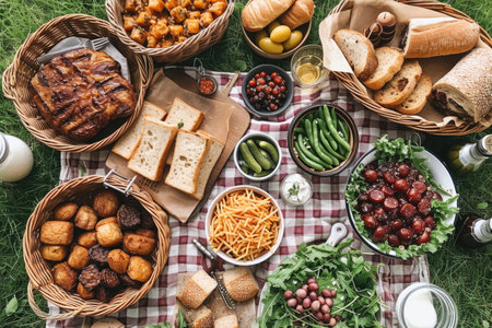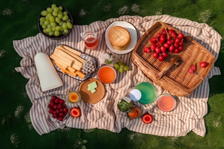 picnic with blanket spread out all food on a grassy field when spring day professional photographypicnic with blanket spread out all food on a grassy field when spring day professional photography