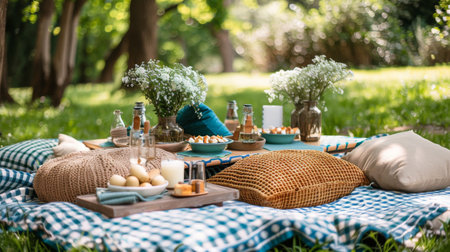 picnic with blanket spread out all food on a grassy field when spring day professional photographypicnic with blanket spread out all food on a grassy field when spring day professional photography