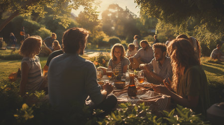 Group of friends having a picnic in a park on a sunny day