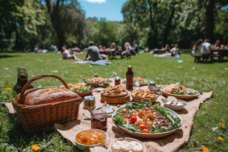 family-friendly picnic setup in a beautiful park setting, created with generative ai
