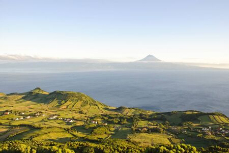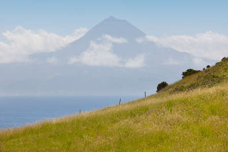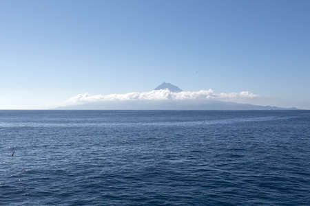Azores landscape. Pico mountain view from Sao Jorge Island. Portugal. Horizontal
