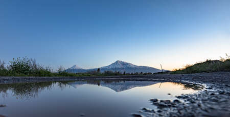Ararat mountain and lake at the sunset