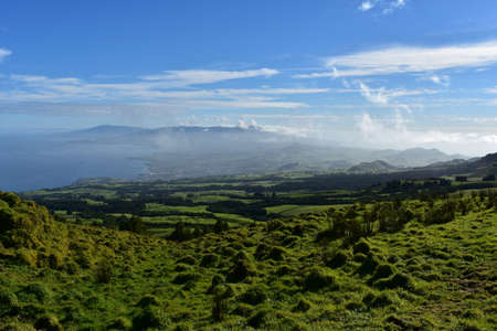 Panorama landscape from the slope of Pico volcano at hiking at azores, Portugal