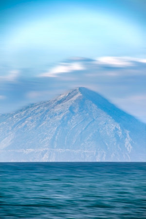 mountain and clouds in motion over the sea