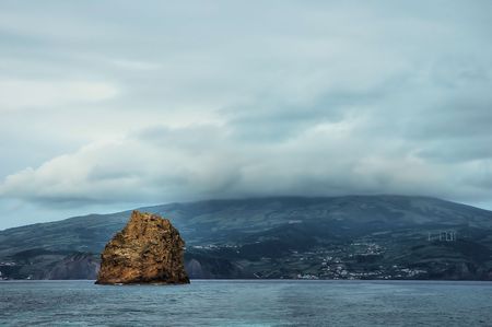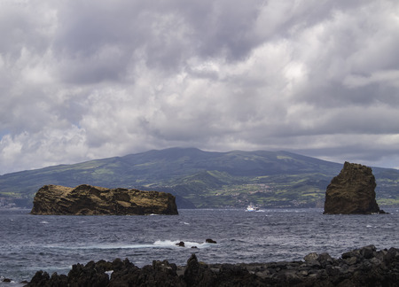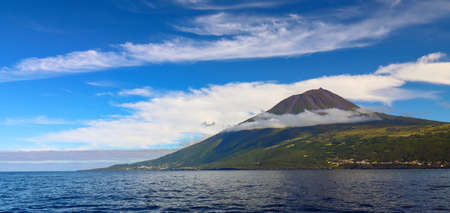 Pico island view from the atlantic ocean. Azores archipelago. Portugal. Horizontal