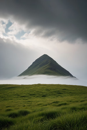 Mountain and grassland landscapes in mist