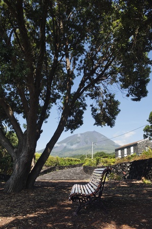 Bench under a big tree in Pico island, Azores