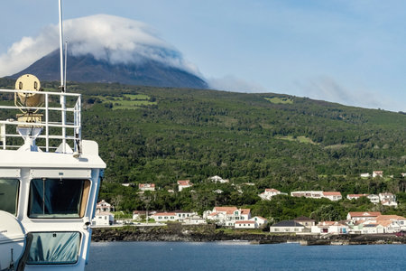Majestic Pico Volcano slopes view fron the boat at Pico island Azores Portugal