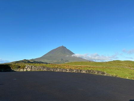 Majestic Pico Volcano slopes view at Pico island Azores Portugal