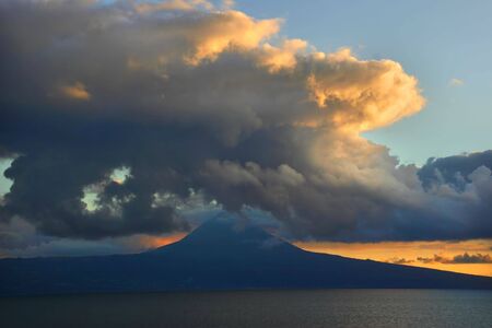 Long Shadow of Mount Pico and Clouds in Evening. Atlantic Ocean. Pico Island, Azores. Portugal
