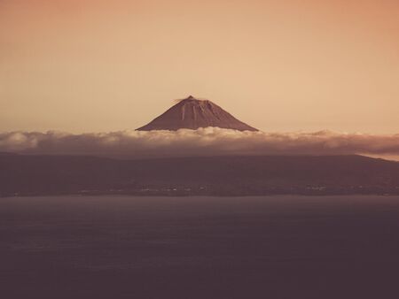Image of the volcano mountain of pico in beautiful sunset colors, Azores