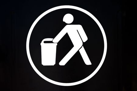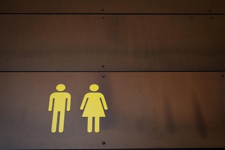 Man woman bathroom toilet wall sign. Dubai. United Arab Emirates.