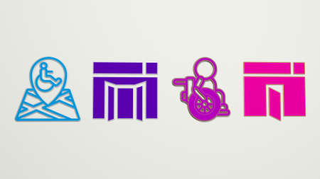 Graphic wooden tokens arranged in a circle on a turquoise background, featuring various symbols representing diversity, inclusion, and accessibility with a minimalist aesthetic