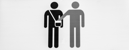 Baby stroller sign and Handicap cripple sign with arrow for directions.