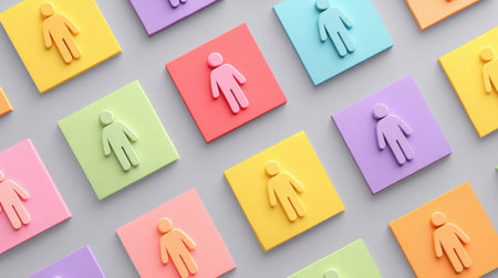 Colorful squares with playful human figure icons create a vibrant and modern design, symbolizing diversity and inclusion for visual communication and creative projects.