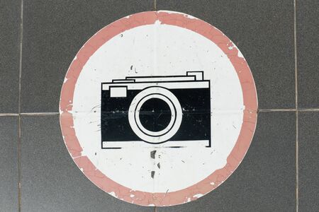 No photography forbidden sign on the wall of an office building, closeup of photo