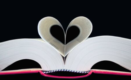 Romantic book with a heart drawn on it on a blurred background