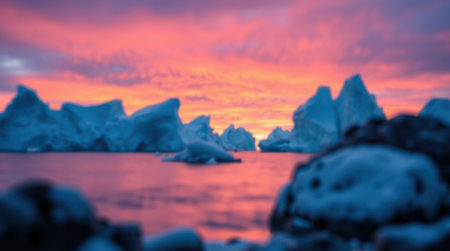 Majestic icebergs bathed in the warm glow of a vibrant sunset. A breathtaking arctic landscape.