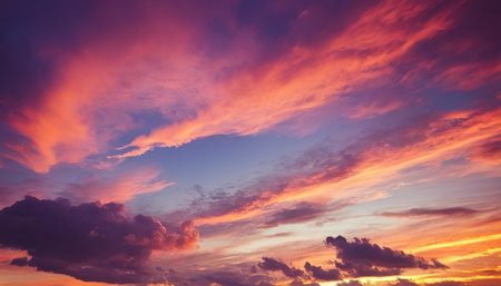 Colorful and dramatic sunset sky scene.