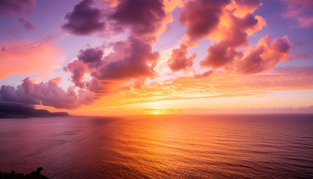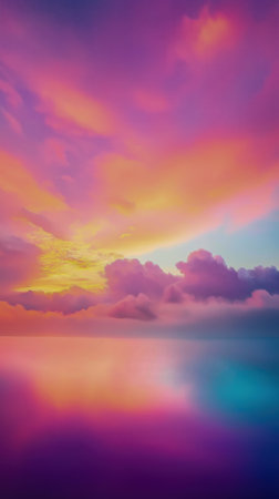 Experience the breathtaking beauty of a vibrant sunset melting into serene waters showcasing a stunning palette of colors and soft cloud formations.