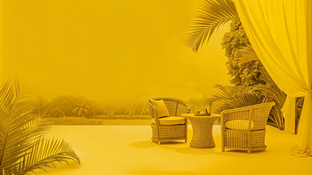outdoor patio with wicker furniture and tropical