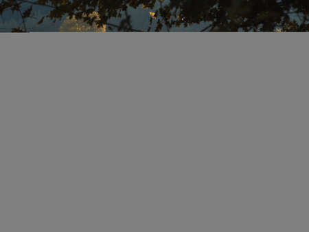 Stunning and colorful panorama with the sunrise shining over the Karawanks mountains, lake Bled and its surrounding hills, located in Slovenia.
