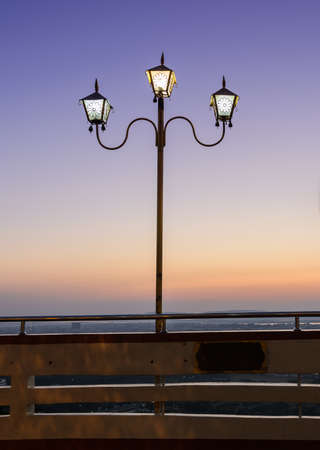 Vintage street lamp on the background of the sea close-up