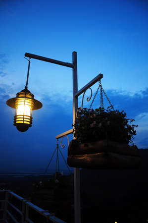 vintage old lamp at dusk, Sunset lamp, blue sky