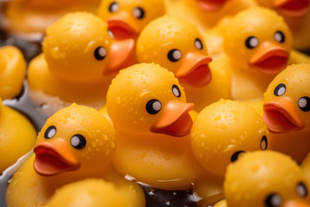A Playful Parade of Colorful Rubber Ducks Floating in a Magnified View