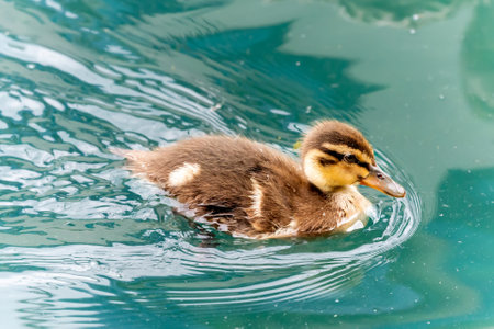 One Mallard Duckling Swimming in Water. Lake Geneva, Switzerland.