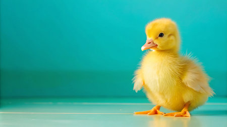 Adorable yellow chick on mint green backdrop lively spring atmosphere