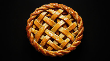A beautifully crafted apple pie featuring a perfectly woven crust, set against a dark background. Ideal for food lovers and seasonal celebrations.