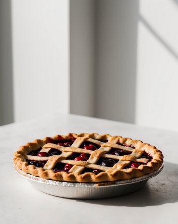 cherry pie with lattice crust and a sprinkling of sugar on top, created with generative ai