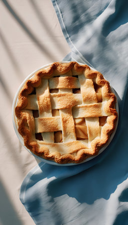 A close-up view of a freshly baked apple pie showcasing a golden crust, perfect for dessert lovers. Ideal for seasonal recipe showcases and culinary art.