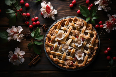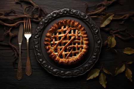 Flaky Pie top view food. Tasty apple bakery. Generate Ai