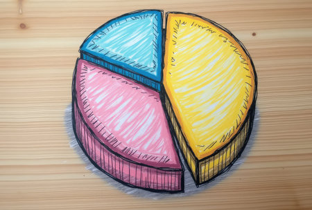 Close-up of a circular pie chart with distinct color sections, isolated on a light background, capturing a clean, modern data feel.